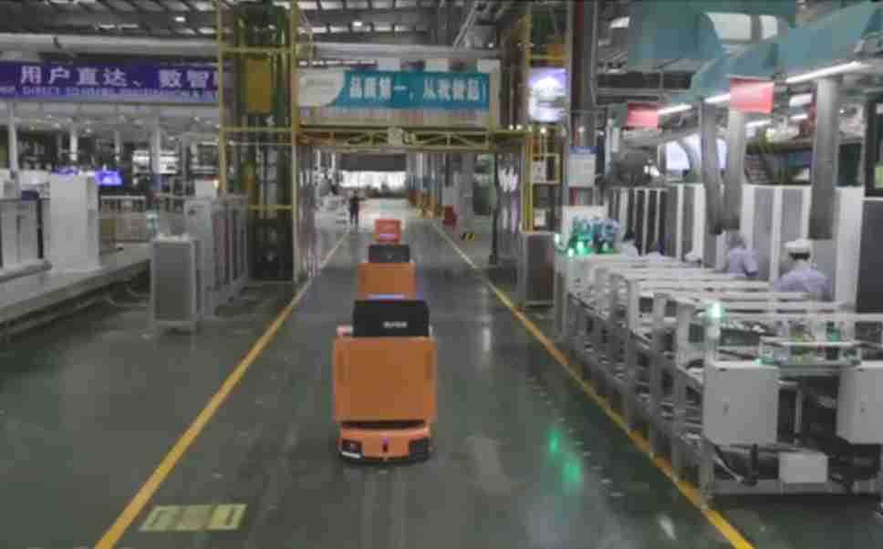 为车载冰箱物流配送打造的智能解决方案,,,,包含产中物流通过潜伏举升AMR搬运至线边,,,,产后成品物流智能仓储,,,,流程包含产中物流智能齐套入库,,,,线边安灯叫料AMR智能配送至线边,,,成品入库、、、、出库,,通过无人堆高车机器人,,,,智能仓储管理替代人工作业管理,,,,实现更高存储、、更高效率、、更具柔性化的解决方案。。。。